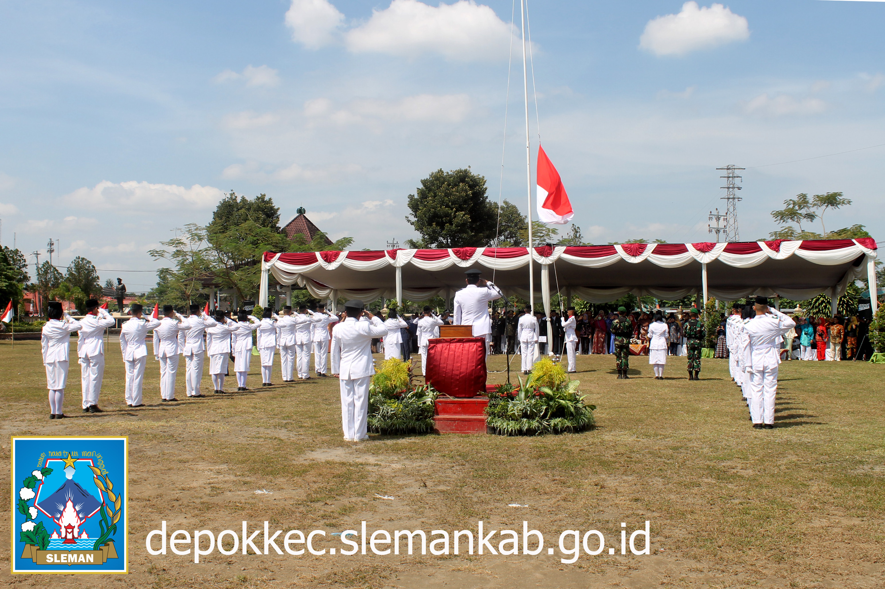 Kapolsek Depok Barat Kompol Sukirin yang mendapatkan kesempatan menjadi inspektur upacara menerima bendera merah putih usai diturunkan Paskibra dalam Upacara penurunan bendera/aubade. Pelaksanaan upacara penurunan bendera dimulai sekitar pukul 16.30 dengan diawali aubade, yakni menyanyikan lagu-lagu wajib nasional. Pelaksanaan upacara bertempat di Lapangan Monumen Pancasila Sakti Kompleks Asrama Yonif/403 Wirasada Pratista Kentungan Condongcatur.