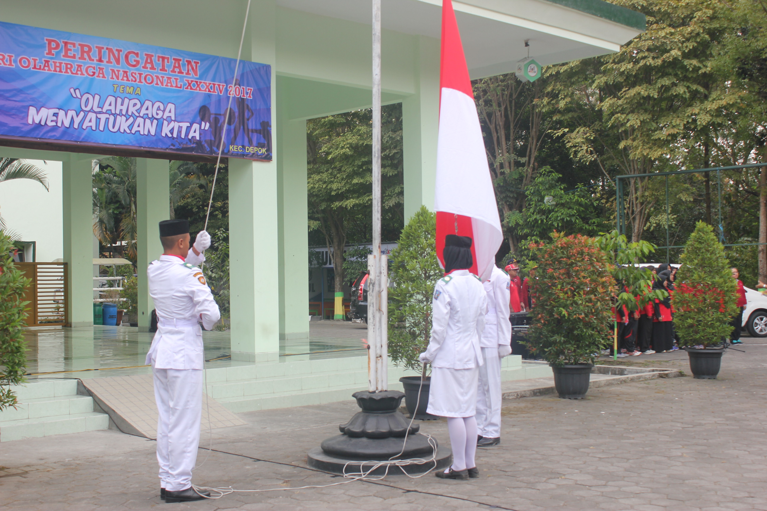 Petugas Pasukan Pengibar Bendera berasal dari siswi SMK N 1 Depok, Sleman. Adapun sebagai Inspektur Upacara tahun ini adalah Camat Depok Drs. Krido Suprayitno, S.E., M.Si.